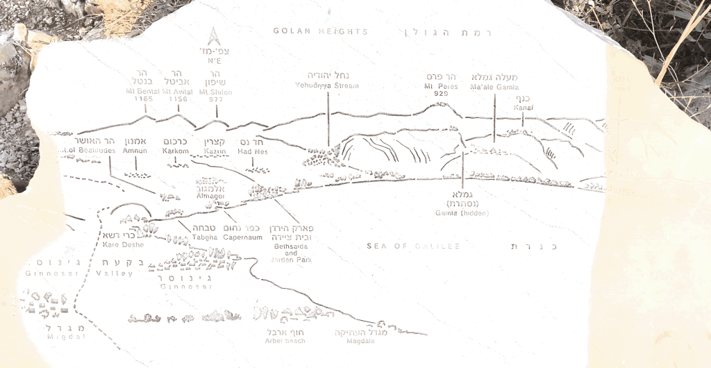 Sea of Galilee (right), Capernaum, Mt of Beatitudes, Bethsaida