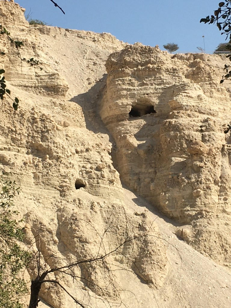 A view of desert caves and waterfalls where David, in his exile, encountered Saul
